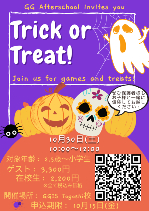 今年もGGIS主催のハロウィーンパーティを10月30日(土)に開催いたします!