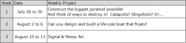 *Weekly themes and projects may change without notice.
